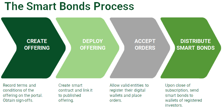 While bond markets have proven to be stable, efficient and safe, they leave room for process improvement. The underlying processes in the bond markets are sub-optimal, insecure, and require continuous exchange of emails to keep all deal participants in sync during issuance, closing, settlement, registration of ownership, calculation and payment of interest, and redemption.
